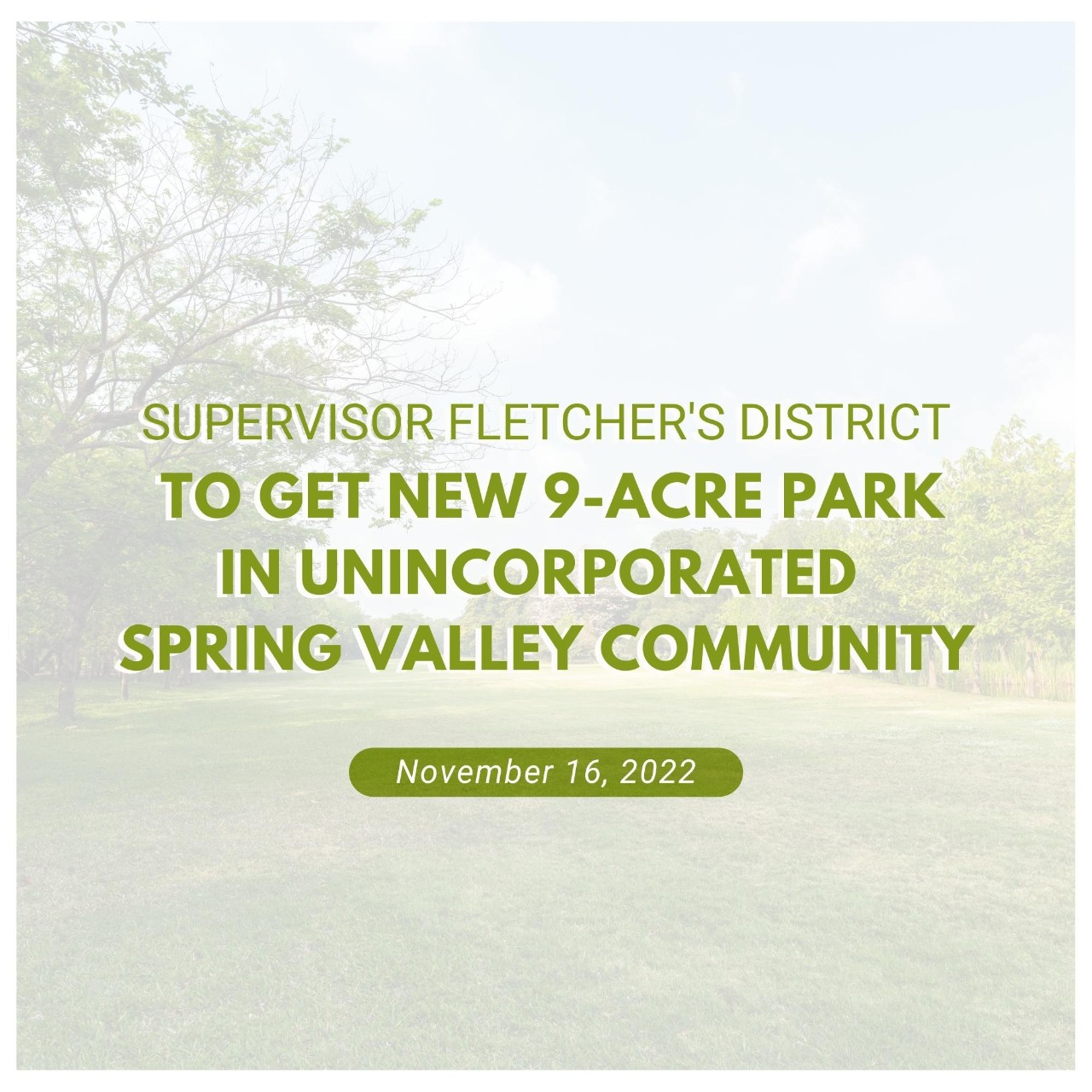 A new park is going to be built in Spring Valley. Supervisor Nathan Fletcher and the San Diego County Board of Supervisors today authorized staff to proceed with identifying a contractor to build Calavo Park in a dense residential community with multifamily housing near schools.