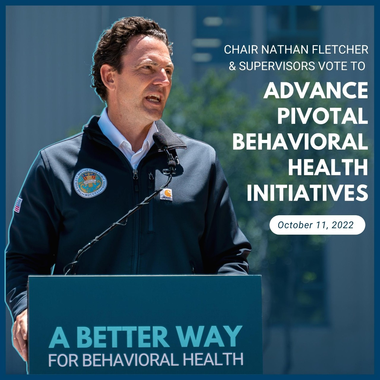 Chair Nathan Fletcher, and the San Diego County Board of Supervisors today authorized the County’s Behavioral Health Services Department to renew a series of procurements for mental health and addiction treatment with several providers, including renewal of an agreement for care coordination services with Blue Shield of California Promise Health Plan.